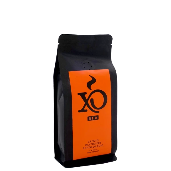 So polarisierend die Röstung XO Fera ist, so verführerisch schmeichelnd kommt XO EFA daher. Klar und unverfälscht wie Wasser aus einem Gebirgsbach, weich und harmonisch. Der Kaffeegeschmack ist frei von Säure, leicht und von fast brillanter Sauberkeit mit einer ausgeprägten Süße. Unaufdringlich und doch so wohlschmeckend.